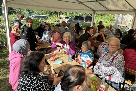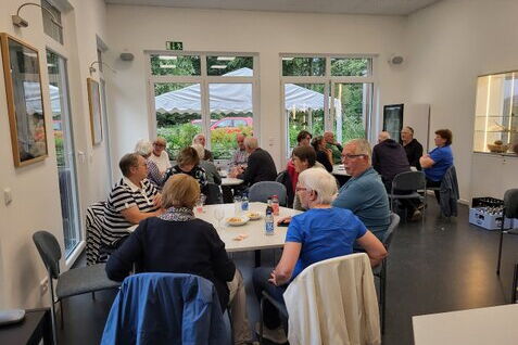 Der Juli-Nachmittag stand im Zeichen von Liedern und Geschichten. Nach dem Corona-Neustart war das Singen wieder fester Bestandteil der Treffen geworden. Heinz Battling begleitete ...
