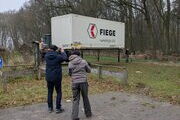 Die Anlieferung erfolgte per LKW über den engen Parkplatz bis in die Nähe des Aufstellungsortes. Dann kam der imposante Radlader ins Spiel. Er nahm den Container auf seine Gabel, rangierte einige Male auf dem eingeschränkten Platz und setzte dann das ganze Stahlgebilde zentimetergenau auf die Betonfundamentpunkte. Transport abgeschlossen.