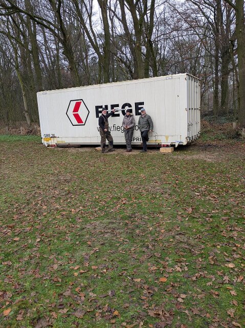 Nachdem die Fundamente errichtet und ausgehärtet waren konnte es grünes Licht für das Aufstellen des neuen Materialcontainers geben.