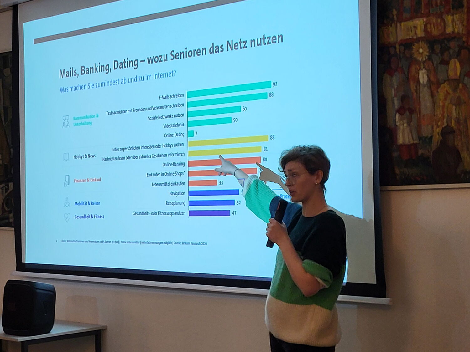 Das Interesse war groß und der Saal war bis auf den letzten Stuhl besetzt. Dem gespannt lauschenden Publikum präsentierte die Referentin auf sehr unterhaltsame und interaktive Weise, worauf auch ungeübte Mediennutzer achten können.