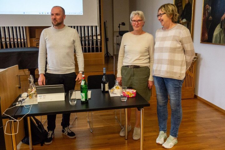 Im großen Saal des historischen Gebäudes erläuterte der Archivar Lennart Metken Besonderheiten der Kirchenbücher, die ja auch online verfügbar sind. Zusätzlich präsentierte er auch Quellen, die in den Tiefen des Bistumsarchivs verborgen sind und nur nach Bestellung Vorort im Lesesaal angesehen werden können. Darin befanden sich für Familienforscher interessante Informationen, die zur Erforschung der familiären Verhältnisse wichtig sein könnten. Über die genealogische Bedeutung referierte dann Hedwig Löffeld vom Vorstand der WGGF (Westfälische Gesellschaft für Genealogie und Familienforschung), rundete das Vortragsprogramm so geschickt ab.