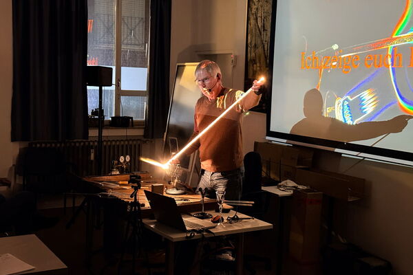 Schweifel erklärte auch die außerordentliche Bedeutung von Glas und Glasfaser für die Kommunikation. Die längste Glasfaserleitung, so informierte er das staunende Publikum, ist gut 30.000 Kilometer lang. Wie schnell man aus einem Stück Glas eine lange Glasfaserleitung erstellt, durch die dann Licht gesendet wird, demonstrierte er auch prompt vor Ort. Dass Glas eigentlich kein Feststoff ist, sondern eine Flüssigkeit, überraschte viele der Gäste, wurde ihnen aber bei der unterhaltsamen Vorführung im Heimathaus dann schnell klar. Schweifel gelang es vorzüglich, alle Aspekte von Glas nahezu „fühlbar“ zu machen. Die Teilnehmer des spannenden Abends gingen mit vielen neuen Erkenntnissen und Wissen heim, dass man sich, so ein begeisterter Teilnehmer, vorher nicht einmal vorstellen konnte.