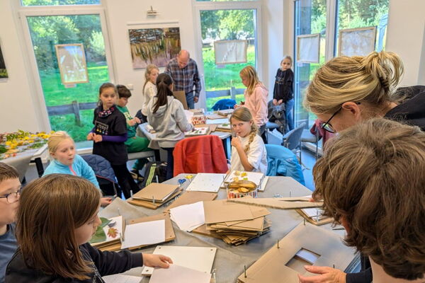 Aus zuvor gesammelten Blumen und Blättern haben die Kinder dann unter Anleitung von Dieter Lammerding vom Team Sachsenhof ihre hölzernen Blumenpressen Lage für Lage zwischen Pappen mit einigen Pflanzenteilen bestückt. In drei bis vier Wochen dürfen sie dann gespannt sein, wie die Blüten und Blätter im dann getrockneten und gepressten Zustand aussehen. Der Kurs hat jedenfalls richtig Spaß gemacht - so die einhellige Meinung aller Beteiligter!