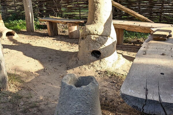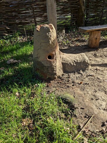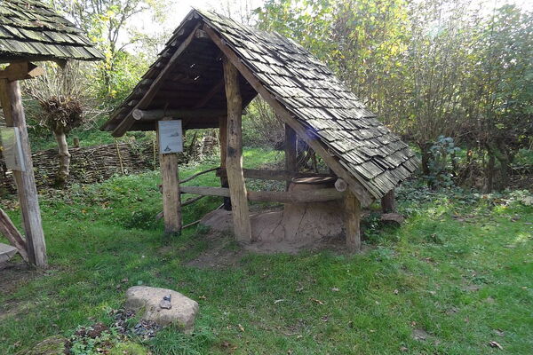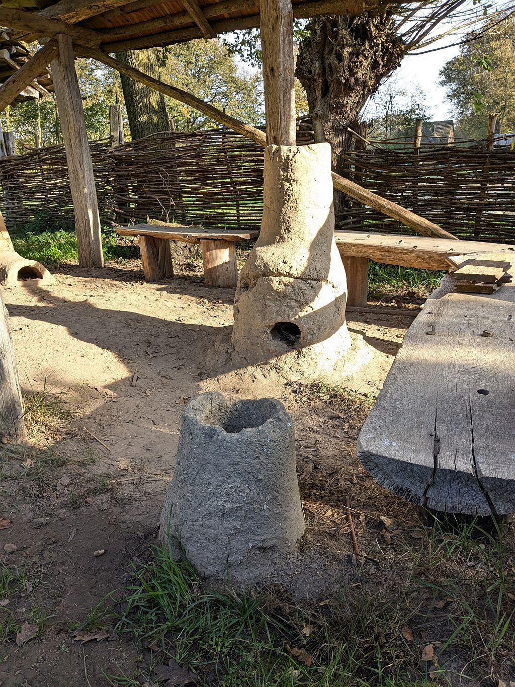 Sächsische Töpferöfen aus dem Frühmittelalter sind noch recht unerforscht. Dieser sogenannt, „ liegende Ofen“( die Feuerung liegt vor der Brennkammer und nicht darunter) ist ein Rekonstruktionsversuch nach fränkischen Vorbildern aus Geseke/ Kreis Soest, Trier und Krefeld- Gellep. Der Vorteil dieser Öfen besteht darin, dass sie sehr vorsichtig hochgeheizt werden können. Es entsteht so sehr wenig Ausschuss.