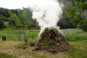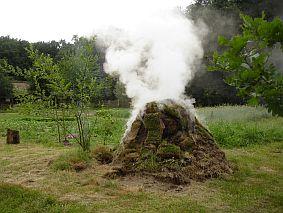 Aber auch Versuche, mit Torf als Brennstoff, wurden durchgeführt. Nachdem die Technik zuverlässig beherrscht wurde, konnten die Ergebnisse 2023 auf der EXAR (Verein für Experimentelle Archäologie) Jahrestagung in Wien, in einem Vortrag vorgestellt werden. Dort kam der Wunsch auf, alle Akteure, auch aus dem Bereich der Schmiede, zusammen zu bringen. Die Idee eines Rennofensymposiums war geboren.