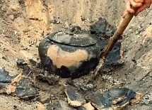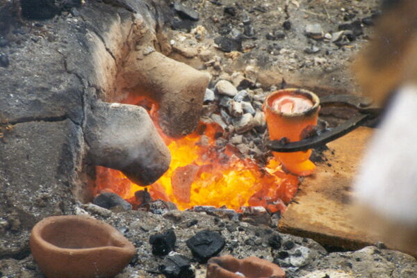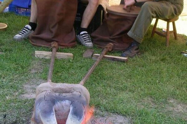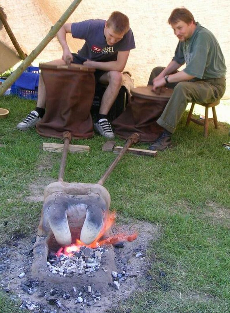 Die Besonderheit bei der Eisenherstellung zur Sachsenzeit ist die Technik, die unsere Vorfahren mit ihren eher beschränkten Ressourcen nutzten, um an Eisen zu kommen. Dieses gewannen sie aus eisenhaltigen Rasen-Erzen, die hier in der Region gesammelt wurden. Für den Schmelzprozess bei Temperaturen zwischen 1000 und 1200 Grad nutze man so genannte „Rennöfen“, die aus Lehm aufgebaut und mit Holzkohle befeuert wurden. „Renn…“ deshalb, weil nach der Schmelze zunächst die verflüssigte Schlacke aus dem Ofen rann, während das schmiedbare Eisen dann als feuersprühender Klumpen aus dem Rennofen geerntet wird, der dafür in der Regel zerschlagen werden muss. Das alte Wissen über diesen Prozess war verloren gegangen, da unsere sächsischen Vorfahren keine Aufzeichnungen hinterließen und mit der Erfindung moderner Verhüttungsmethoden im Mittelalter sowie der Entwicklung von Hochöfen diese sehr aufwändige Methode der Eisengewinnung überflüssig wurde.